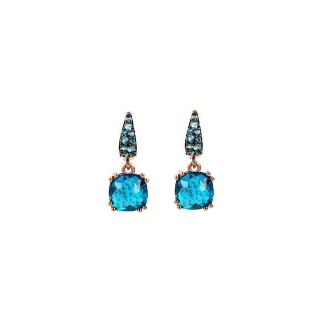 Boucles d'oreilles pendantes Bronzallure en métal doré rose à l'or fin 18 carats et pierres naturelles bleues